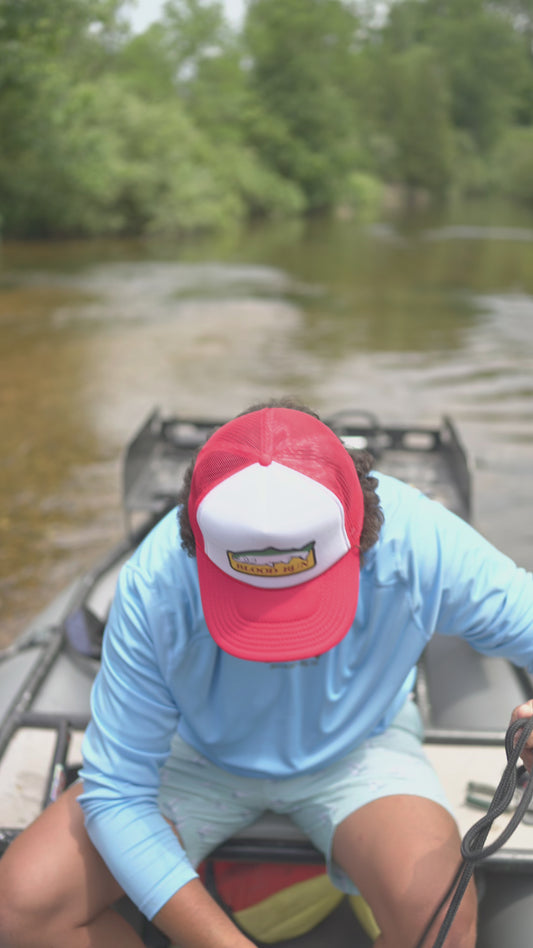 CARDINAL RED BLOOD RUN FISHING SNAPBACK MESH TRUCKER