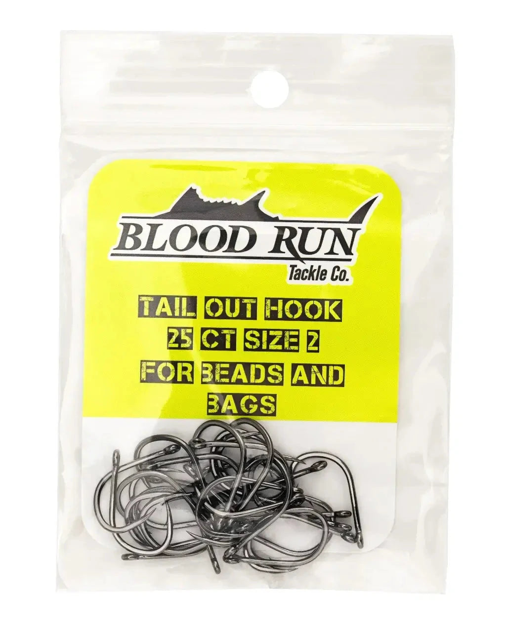 The Tail Out bead hook by Blood Run Fishing is constructed of carbon black forged steel in an extremely light weight design. Utilizing extra heavy wire to eliminate hook twists and bending on power sets, this chemically sharpened tapered beak hook is designed for float fishing, drifting and live or dead bait dropshotting.