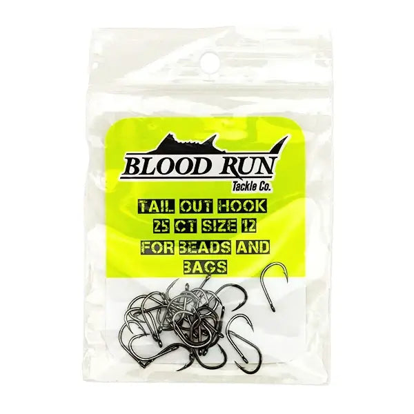 The Tail Out single hook by Blood Run is constructed of carbon black forged steel in an extremely light weight design. Utilizing extra heavy wire to eliminate hook twists and bending on power sets, this chemically sharpened tapered beak hook is designed for float fishing, drifting and live or dead bait drop shot.
